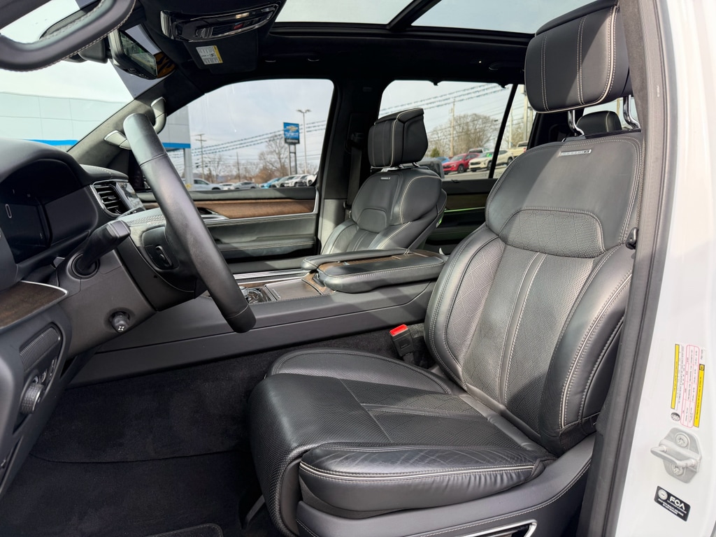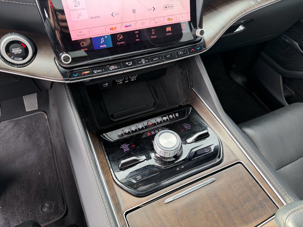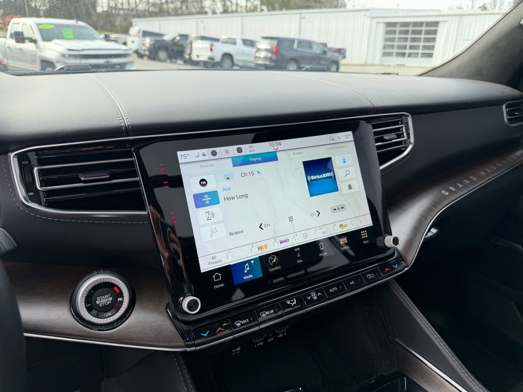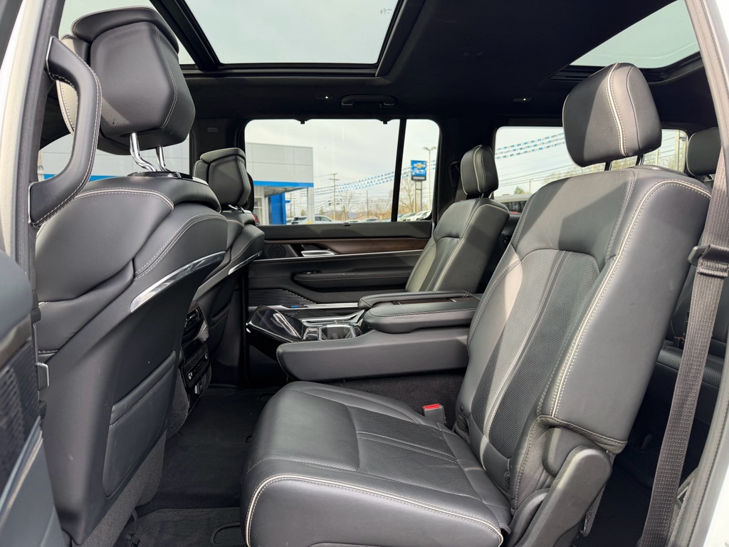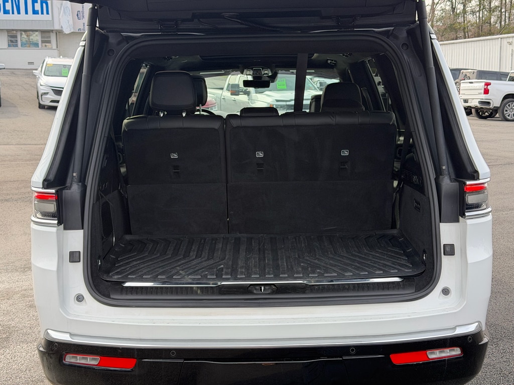 Apple CarPlay: Seamless smartphone integration for it - stay connected and entertained on the go! Never get into a cold vehicle again with the remote start feature on this Jeep Grand Wagoneer. This unit features a hands-free Bluetooth phone system. The installed navigation system will keep you on the right path. This 1/2 ton suv has auto-adjust speed for safe following. See what's behind you with the back up camera on this model. This 1/2 ton suv offers Android Auto for seamless smartphone integration. Keep your hands warm all winter with a heated steering wheel in this unit . This unit's Forward Collision Warning feature alerts drivers to potential front-end collisions. The leather seats in this unit are a must for buyers looking for comfort, durability, and style. This unit has four wheel drive capabilities. The vehicle has a 6 Cyl, 3.0L high output engine. Load groceries and much more with ease into the Jeep Grand Wagoneer thanks to the power liftgate.
