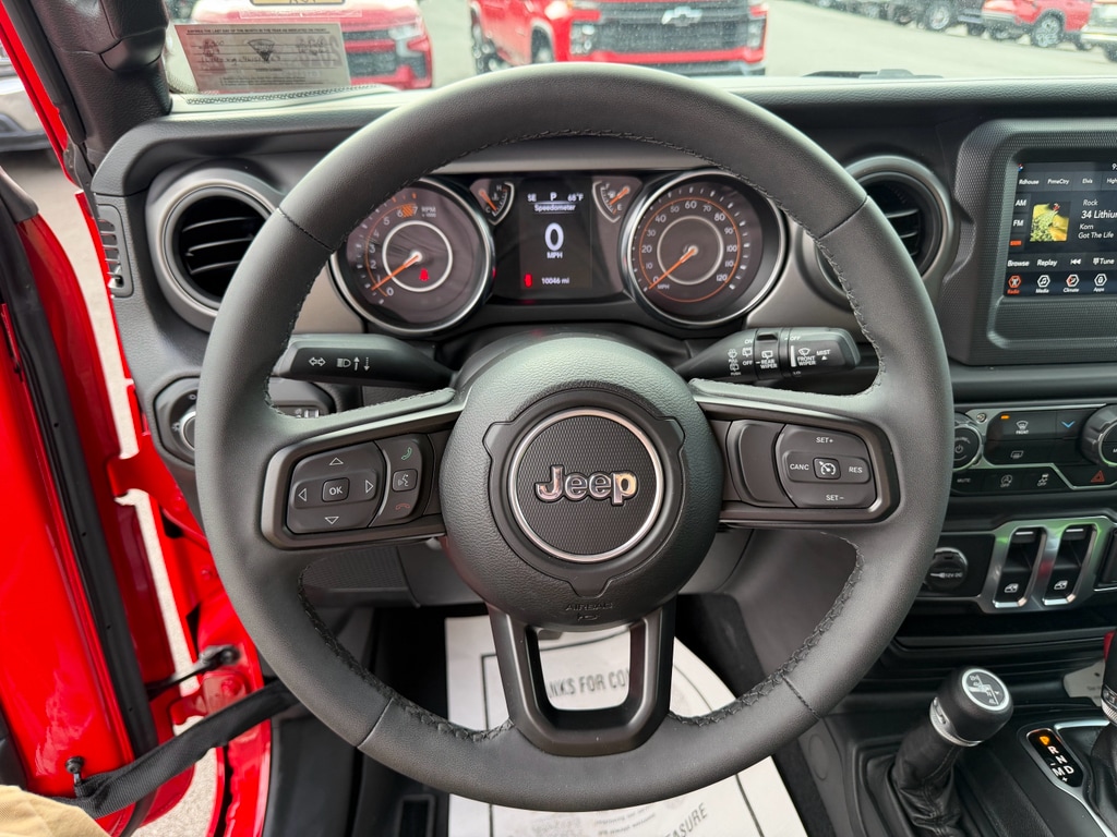 Apple CarPlay: Seamless smartphone integration for it - stay connected and entertained on the go! The satellite radio system in it gives you access to hundreds of nation-wide radio stations with a clear digital signal. Bluetooth technology is built into this vehicle, keeping your hands on the steering wheel and your focus on the road. This 2023 Jeep Wrangler is equipped with the latest generation of XM/Sirius Radio. This mid-size suv offers Android Auto for seamless smartphone integration. Protect this vehicle from unwanted accidents with a cutting edge backup camera system. An off-road package is installed on this 2023 Jeep Wrangler so you are ready for your four-wheeling best. This unit gleams with a flashy red exterior. The vehicle has four wheel drive capabilities. With the keyless entry system on the Jeep Wrangler you can pop the trunk without dropping your bags from the store. This Jeep Wrangler has a V6, 3.6L high output engine.